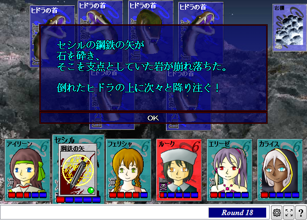 崩れ落ちる岩の中、ヒドラは陸に上がった魚のように激しくのたうつ。