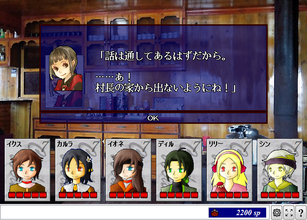 ユニが帰るのを待って、一行は村長から借り受けた部屋に引き上げた。