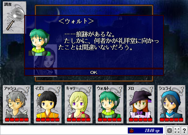 イズミ「今、礼拝堂の方に向かってなにかが走ったような……。見えなかったか?」