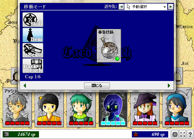 アイテムは護身用に持たせてますが、別のに変えるかもしれない。
